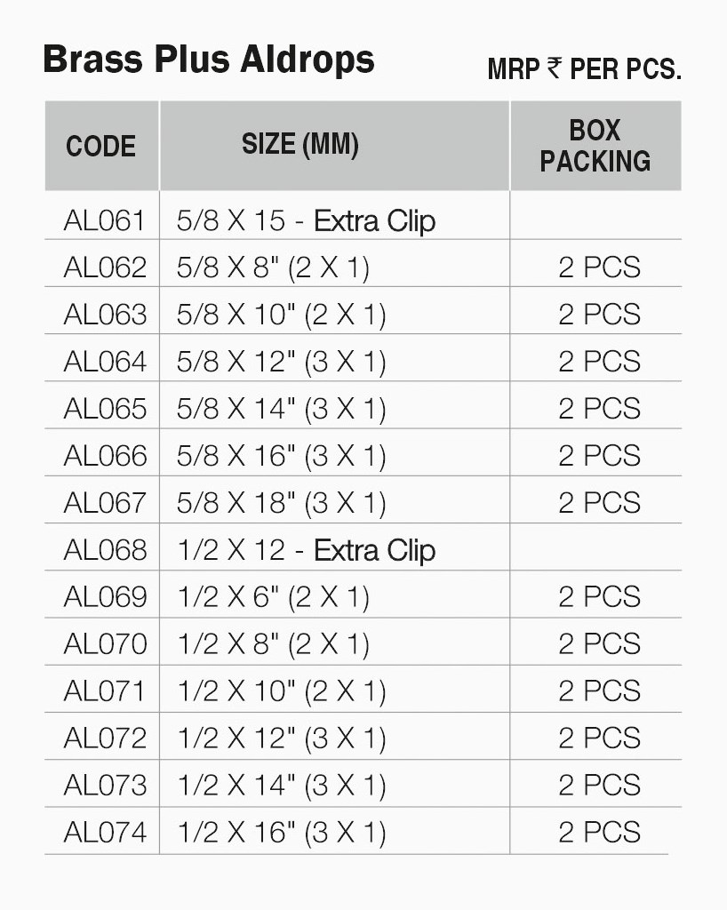 • Durable Brass Plus Aldrop construction for long‑lasting performance