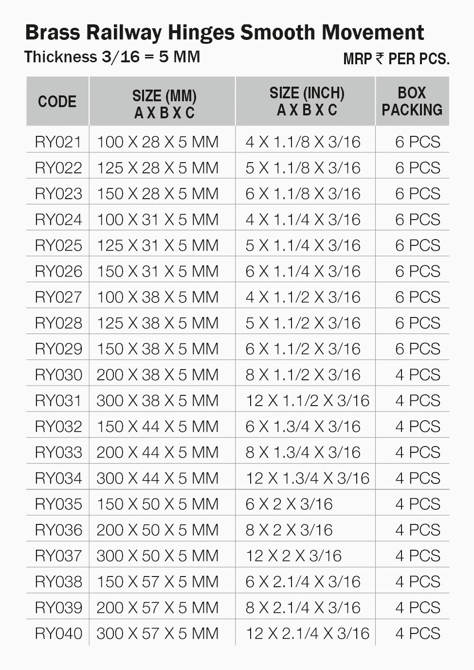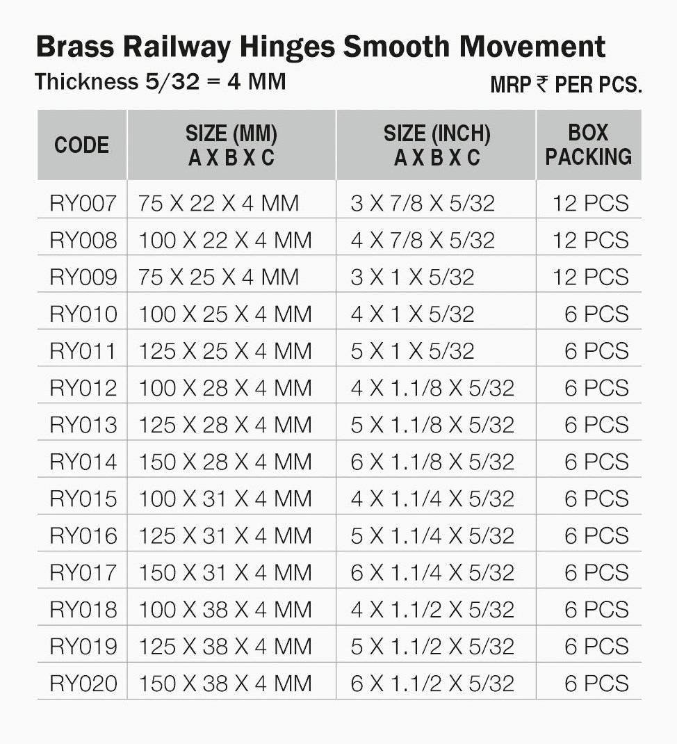 • Traditional Railway Style – Classic hinge profile that distributes load evenly for reliable durability.