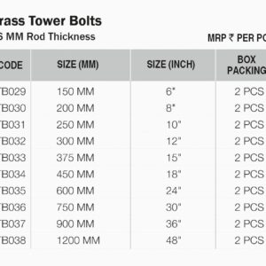 The Brass Tower Bolt from PINE Hardware is a high‑quality brass locking bolt designed for securing doors, windows, cabinets, and furniture. Manufactured by PINE Hardware, this Brass Tower Bolt delivers robust performance and durable construction, ideal for both residential and commercial applications. Enhance security and reliability with this precision‑engineered Brass Tower Bolt by PINE Hardware.