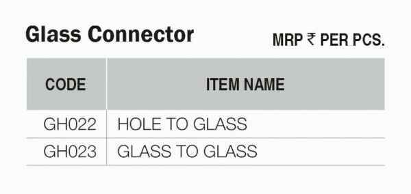 Durable Glass Support: The Glass Connector from Pine Hardware provides secure mechanical support for connecting glass panels in architectural and interior installations.